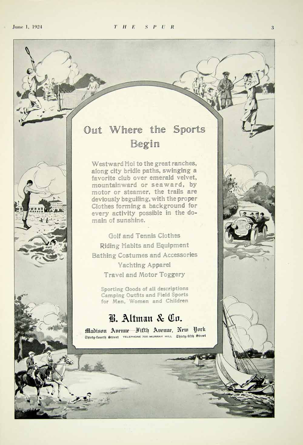 1924 Ad B Altman Madison Fifth Ave NY 34th St Sporting Goods Apparel Golf YTS2