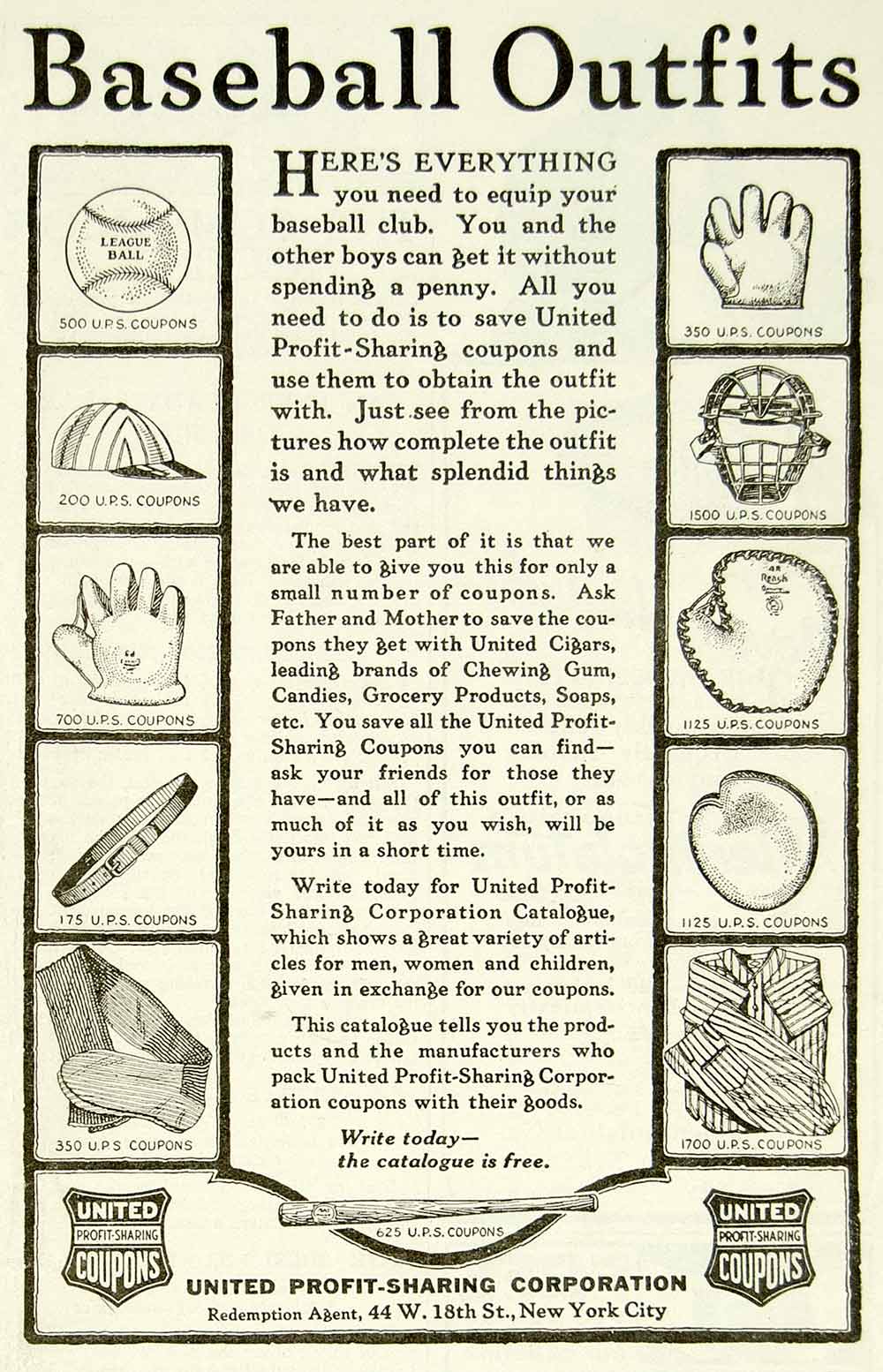 1923 Ad United Profit-Sharing Boys Baseball Outfits Uniforms Sporting Goods YYC4