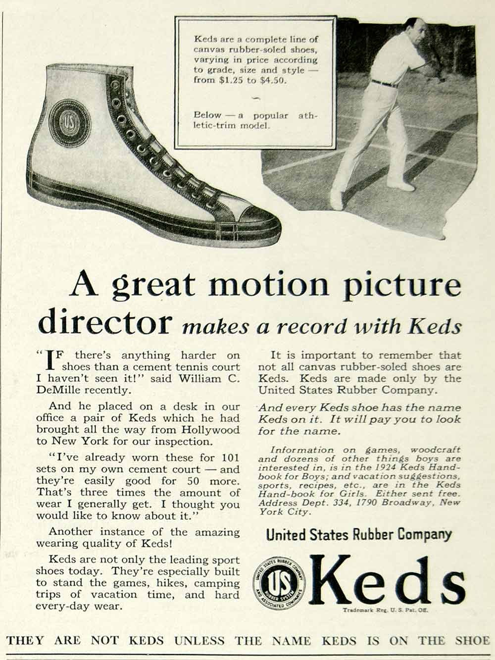 1924 Ad United States Rubber Keds Tennis Shoe William C DeMille Clothing YYC5