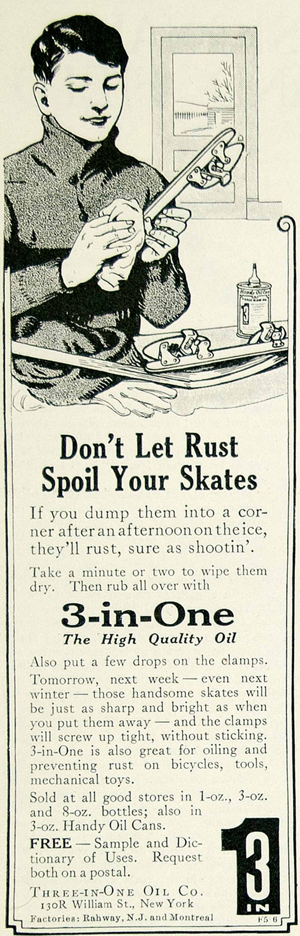 1924 Ad Three-In-One Oil Ice Skates Sports Athlete Children Roaring Twenties Era