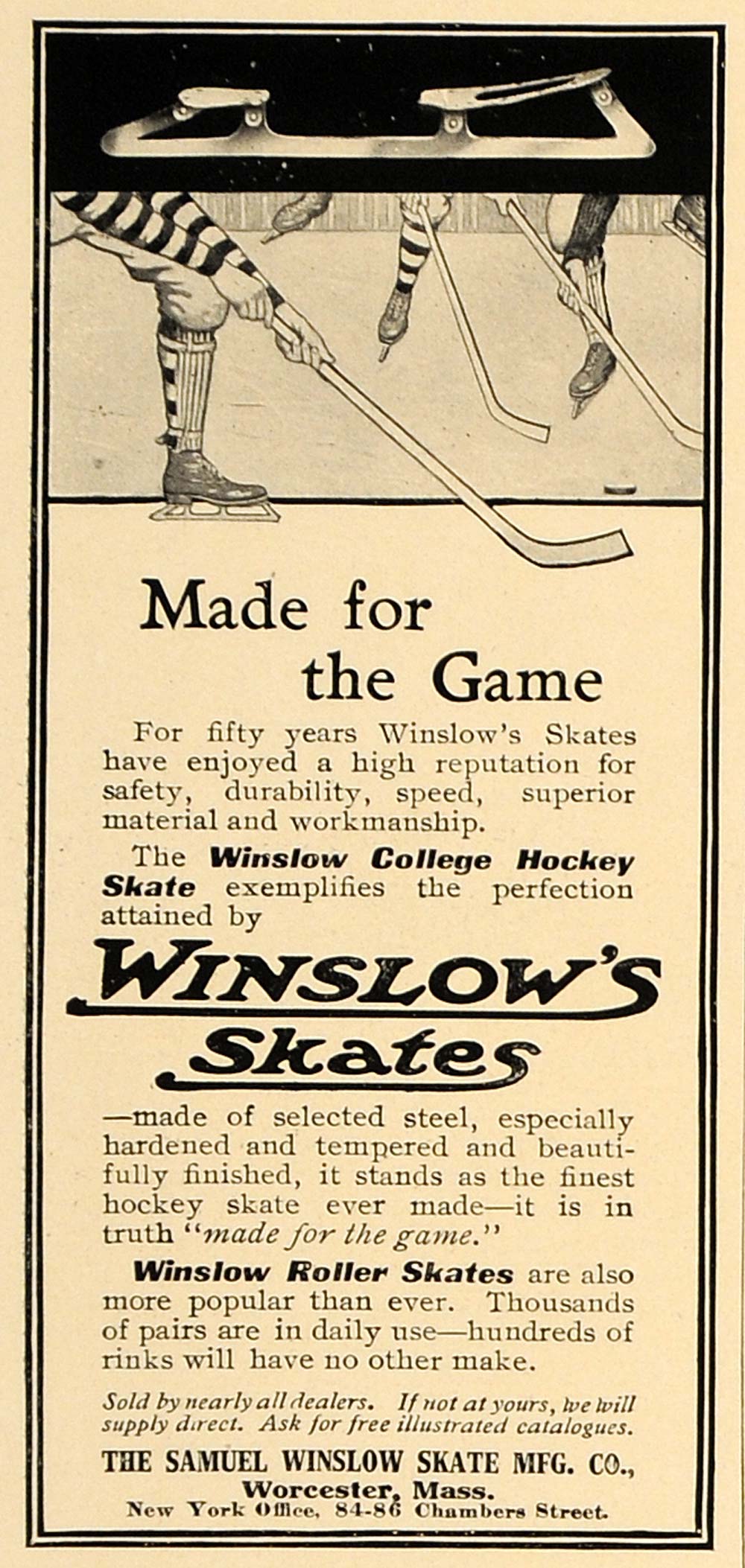 1906 Ad Winslow College Hockey Skate Roller Skates - ORIGINAL ADVERTISING CL4