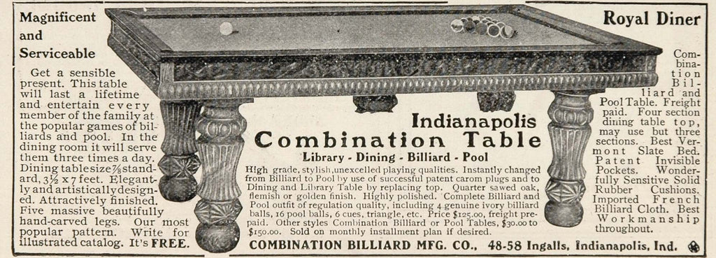1904 Ad Indianapolis Combination Billiard Pool Table - ORIGINAL ADVERTISING OLD3