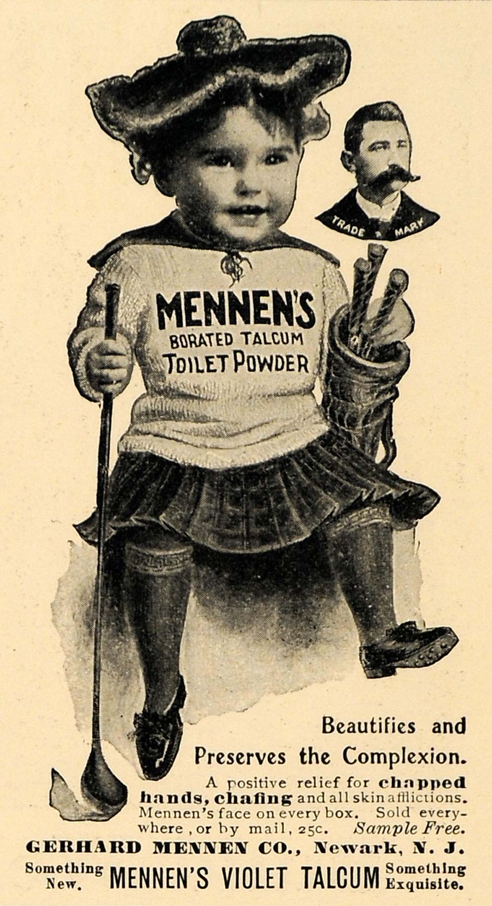 1904 Ad Baby Golfer Mennen Borated Talcum Toilet Powder - ORIGINAL TSM1
