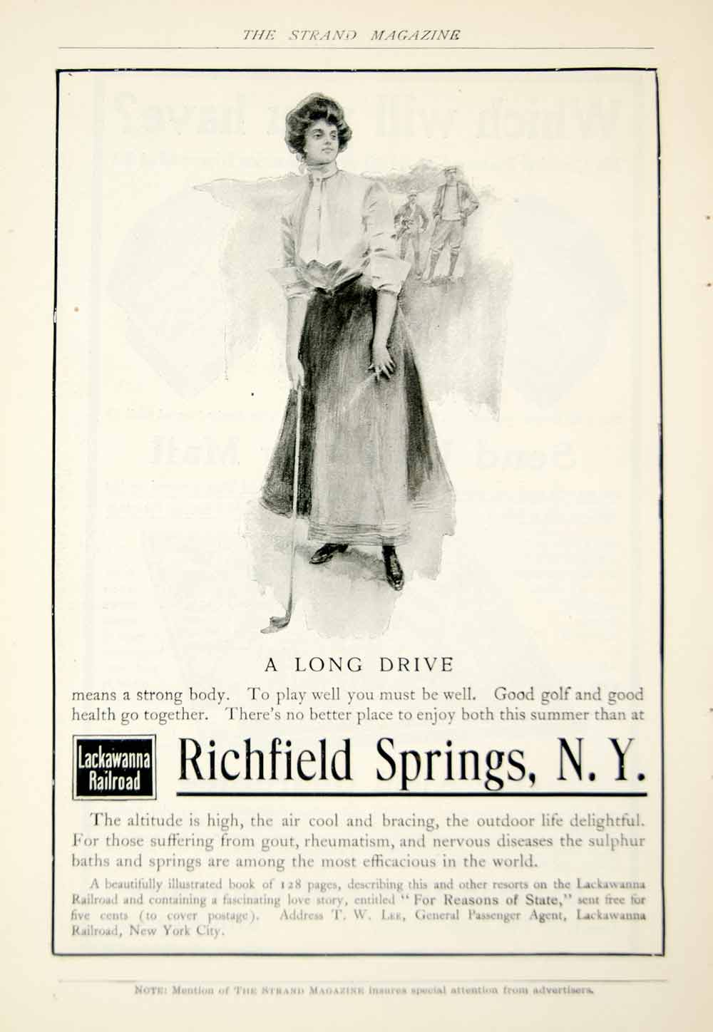 1903 Ad Vintage Lackawanna Railroad Richfield Springs NY Golf Woman Golfing YSM2