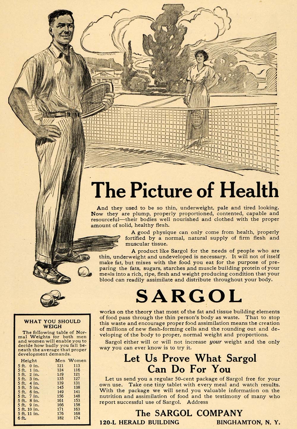 1915 Ad Sargol Company Health Tennis Ball Fashion Sport - ORIGINAL ILW1