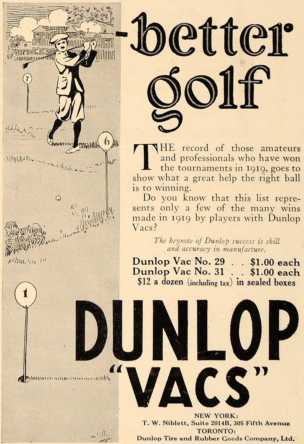 1919 Ad Dunlop Rubber Vacs Golf Ball No 29 31 Niblett - ORIGINAL ADVERTISING CL4