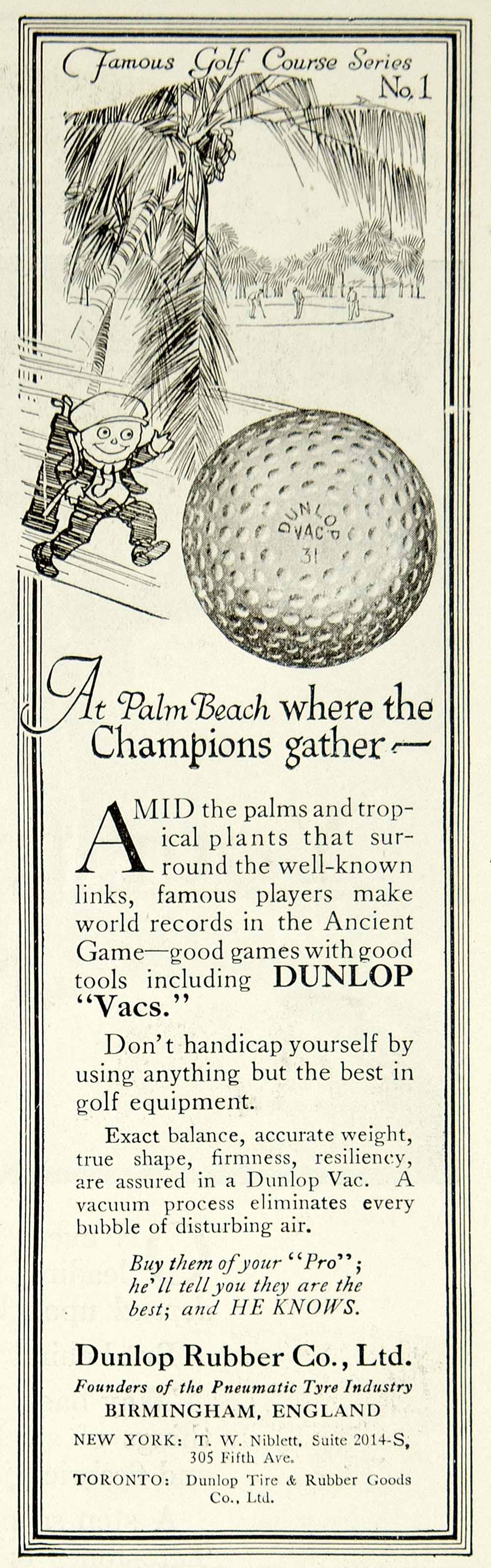 1919 Ad Dunlop Rubber Birmingham England Vac Golf Ball Sports Palm Beach YLD2