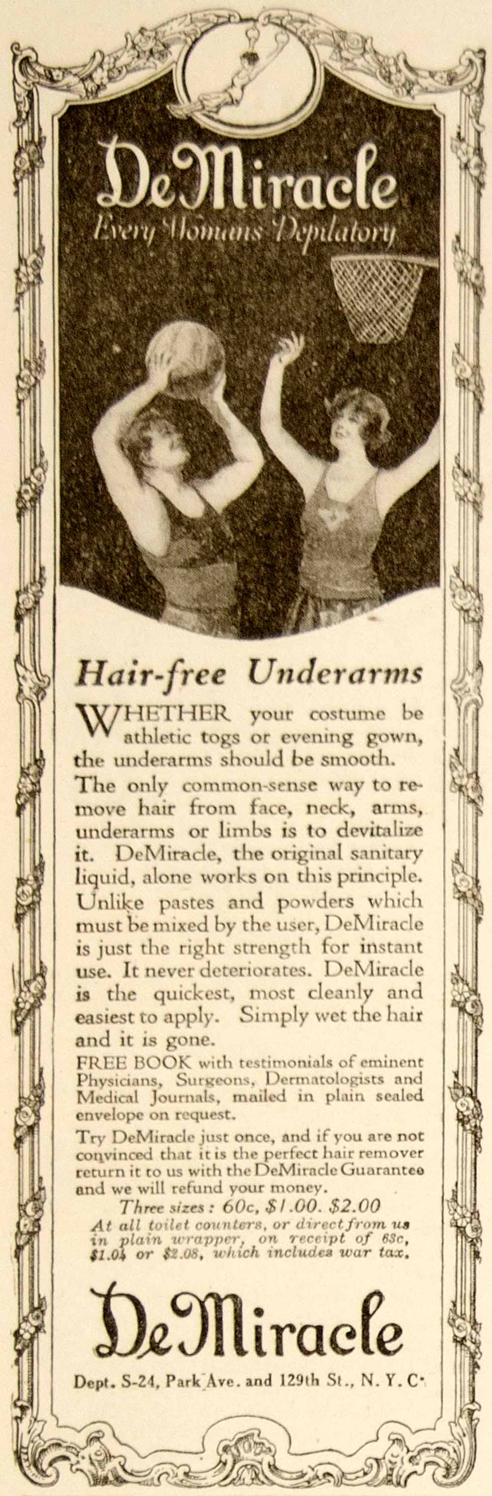 1920 Ad DeMiracle Hair Remover Health Beauty 24 Park Ave 129th St NYC YWW1