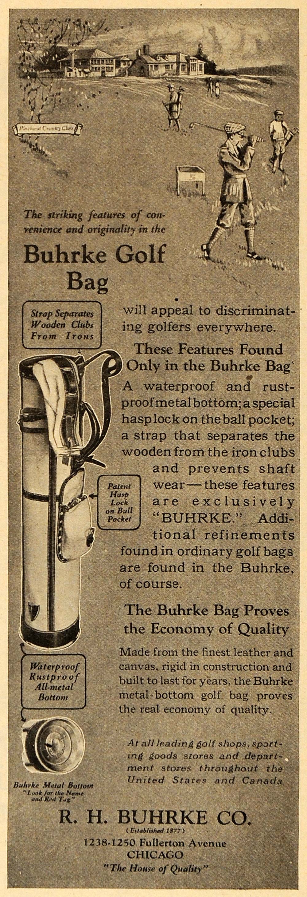 1922 Ad Buhrke Golf Bag Quality Waterproof Metal Bottom - ORIGINAL WW3