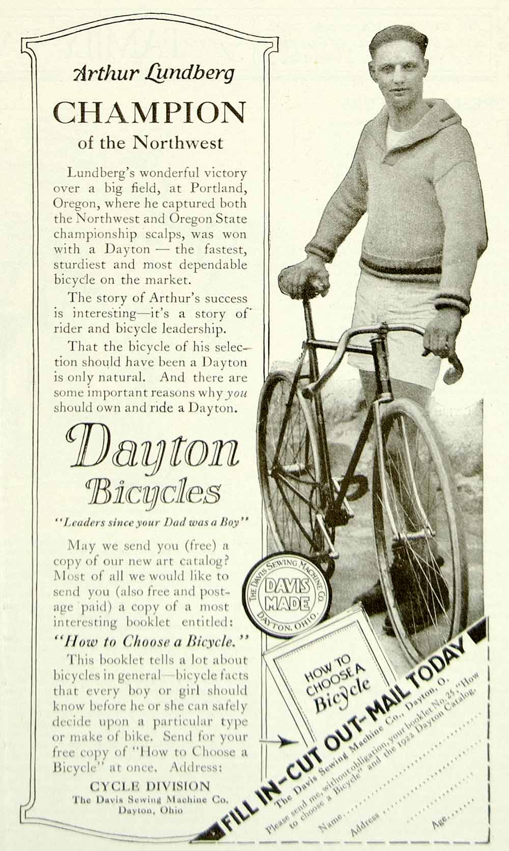 1922 Ad Dayton Bicycles Arthur Lundberg Davis Sewing Machine Transportation YYC3
