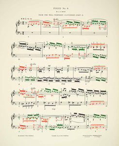 1895 Photolithograph Sheet Music Fugue No. 6 Johann Sebastian Bach Clavichord