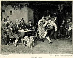 This is an original 1895 black and white halftone print entitled "Ein Ländler," by Felgentreff.
