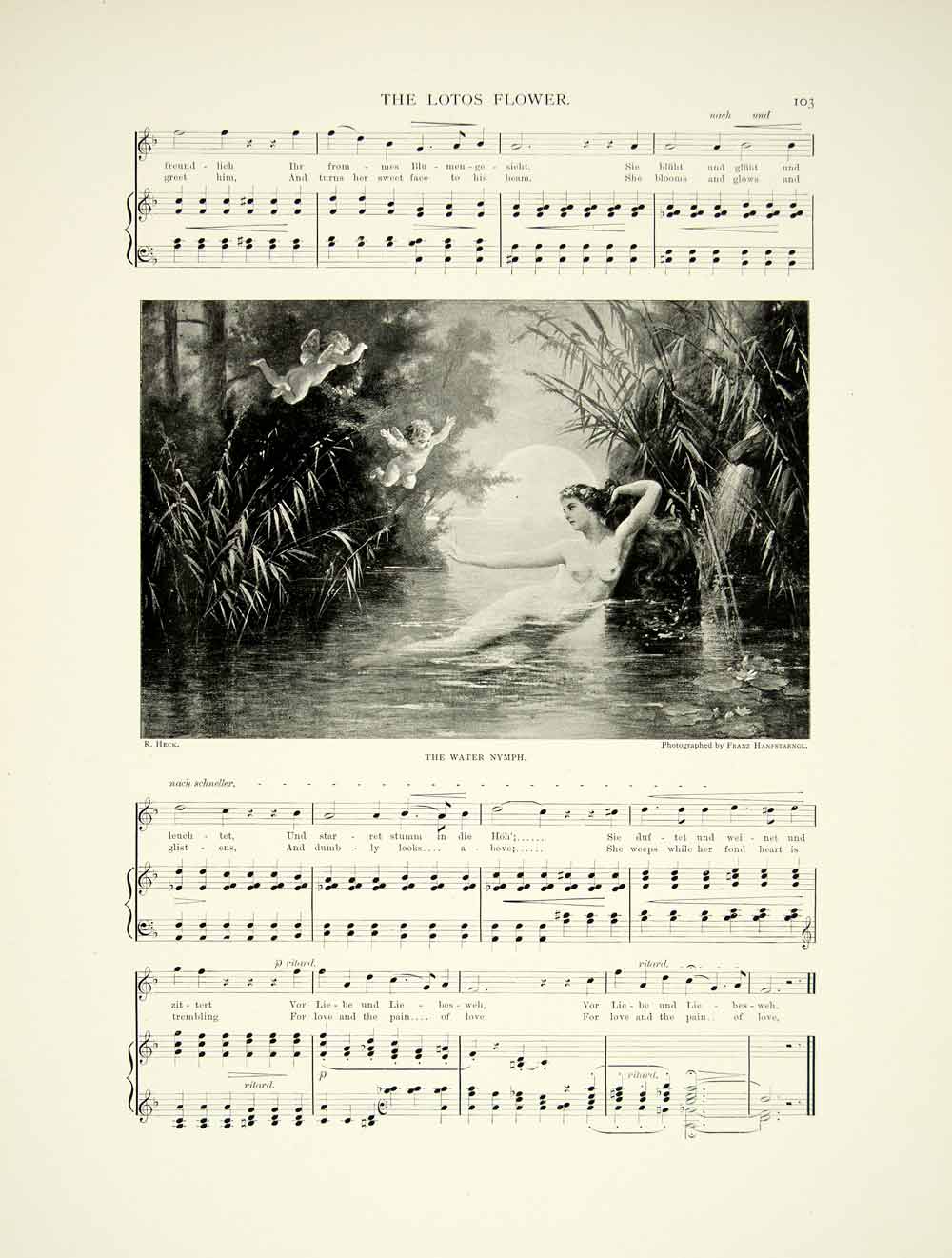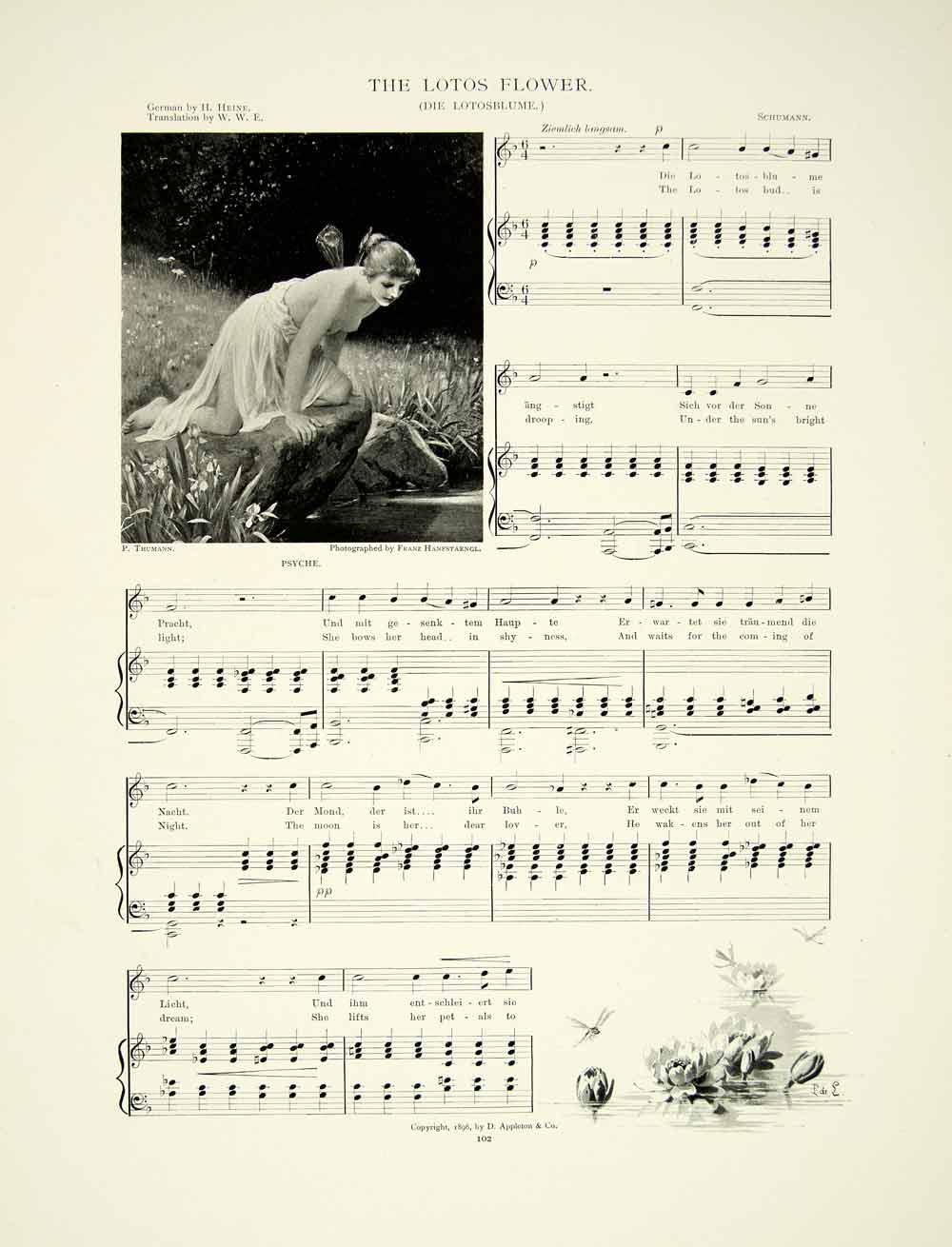 1895 Print Sheet Music Robert Schumann Lotos Flower Die Lotosblume Nude Fairy