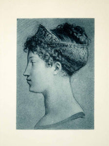 This is an original 1902 grayscale photogravure of a portrait drawing by the French artist, Pierre-Paul Prud'hon (1758-1823) of the French Empress Marie Louise of Austria.