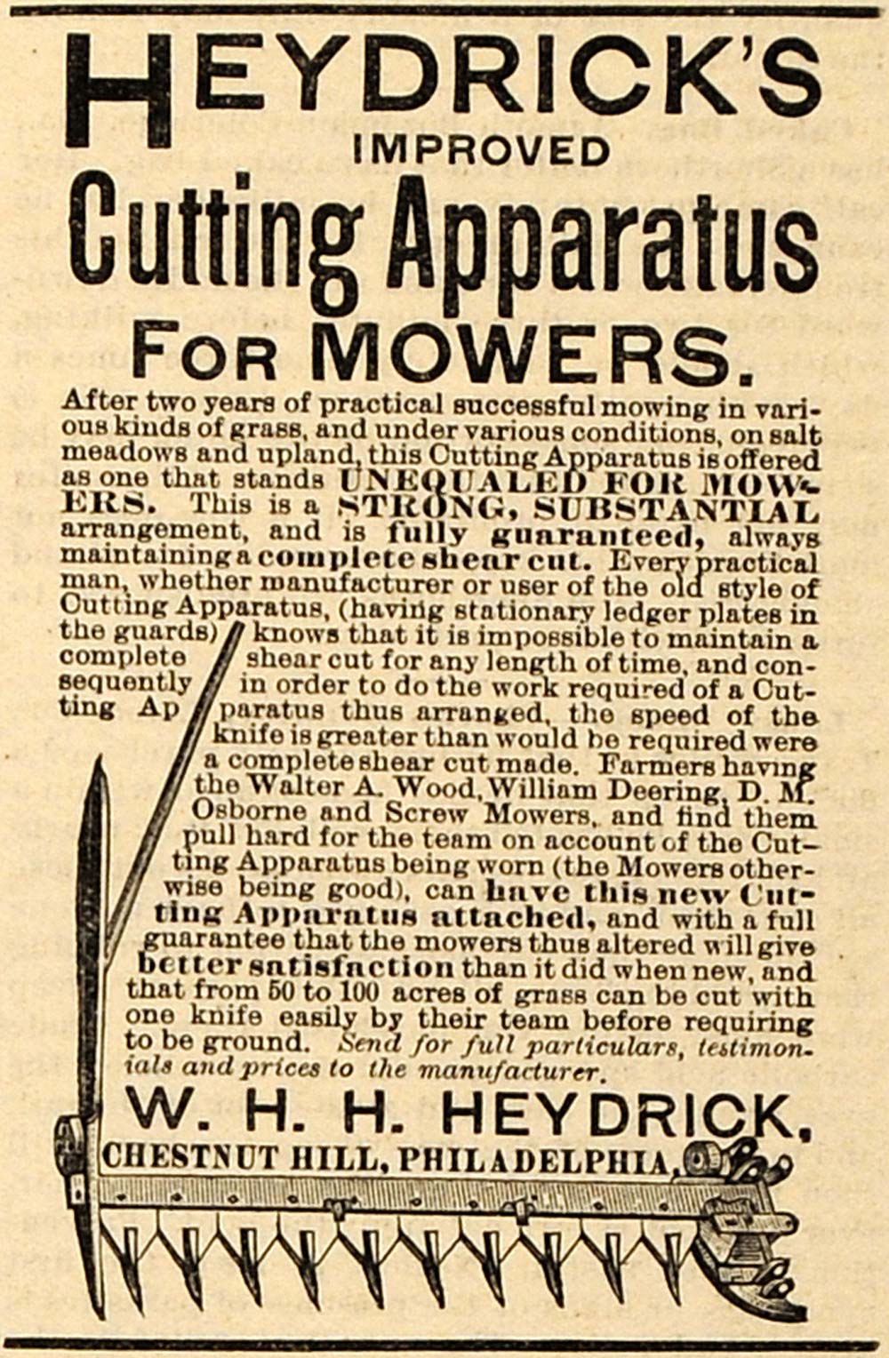 1890 Ad Heydrick's Cutting Apparatus Lawn Mowers Agriculture Machinery AAG1