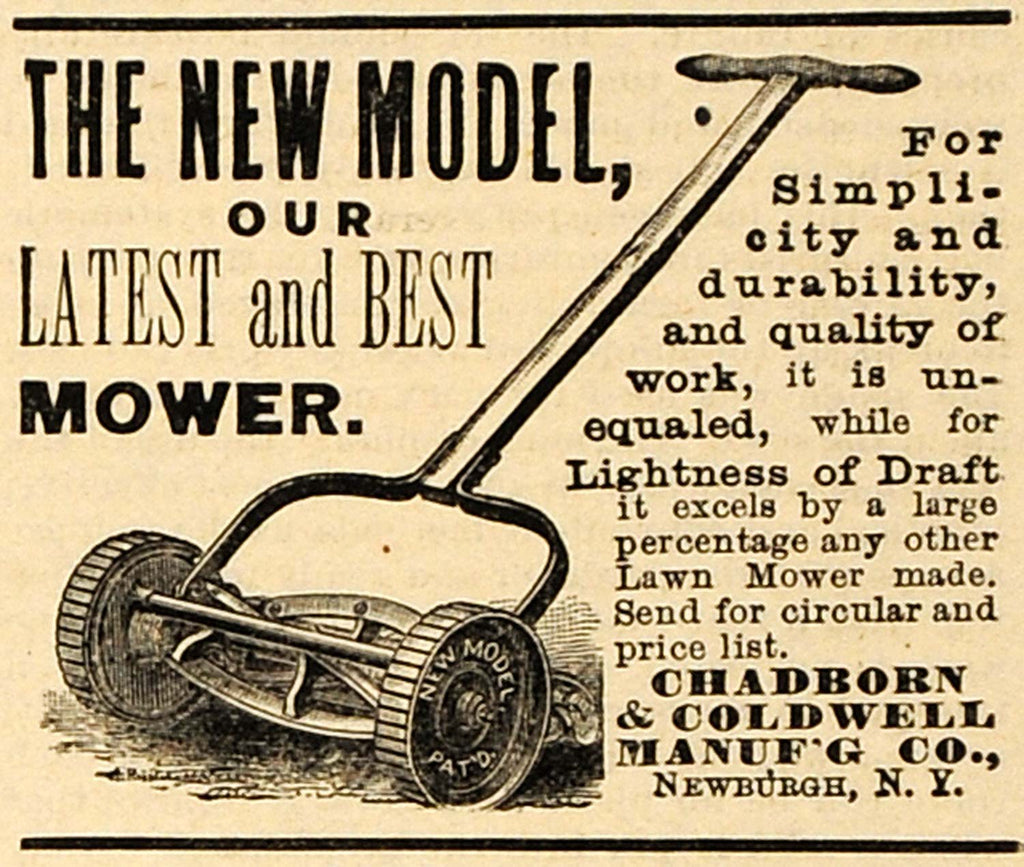 1890 Ad Chadborn Coldwell Push Lawn Care Mower Newburgh New York AAG1
