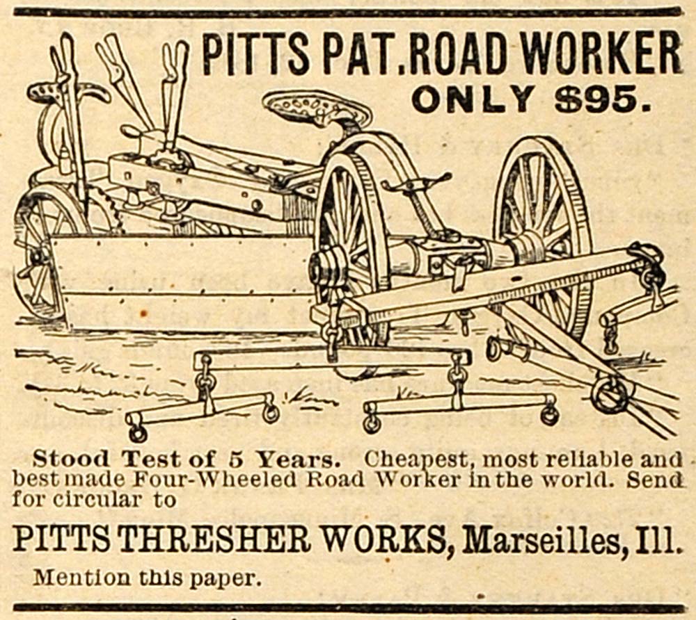 1890 Ad Pitts Thresher Works Road Worker Farm Machinery Agricultural AAG1