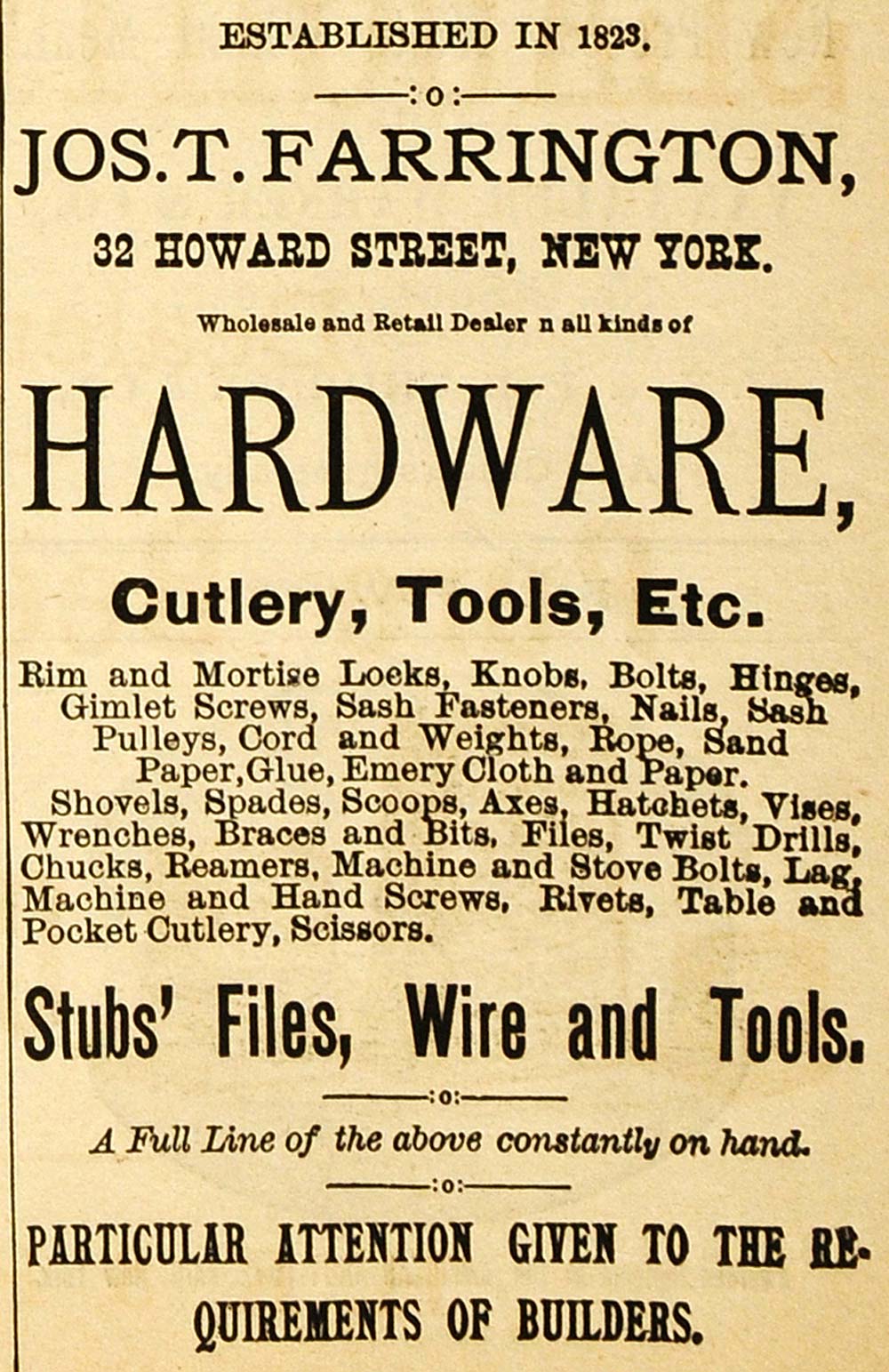 1883 Ad Joshua Farrington Hardware Cutlery Tools Wire - ORIGINAL GROC1