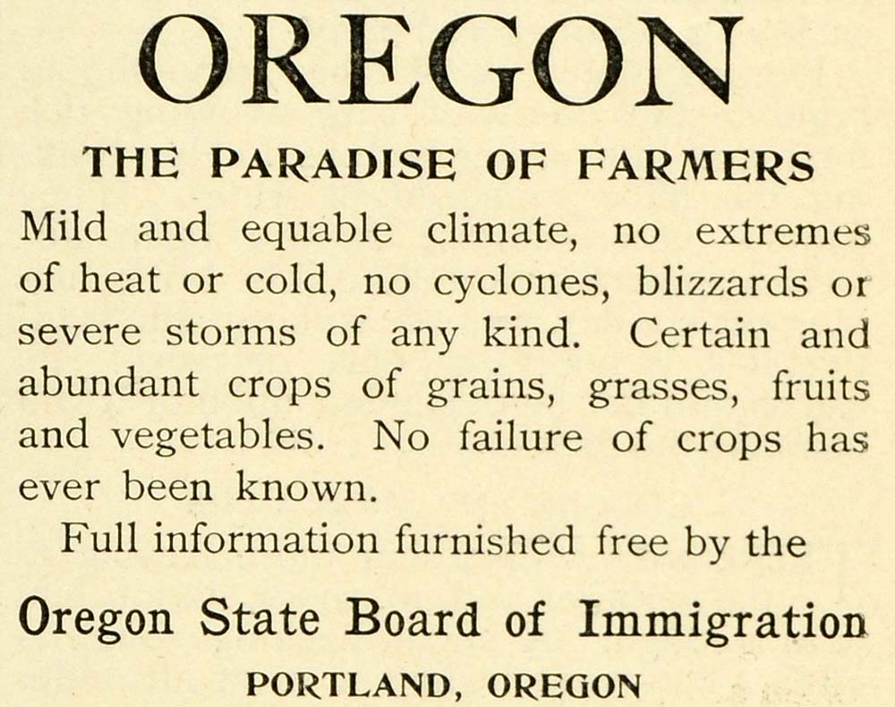 1893 Ad Portland Oregon Chamber Commerce Agriculture Climate Farmer's LHJ6