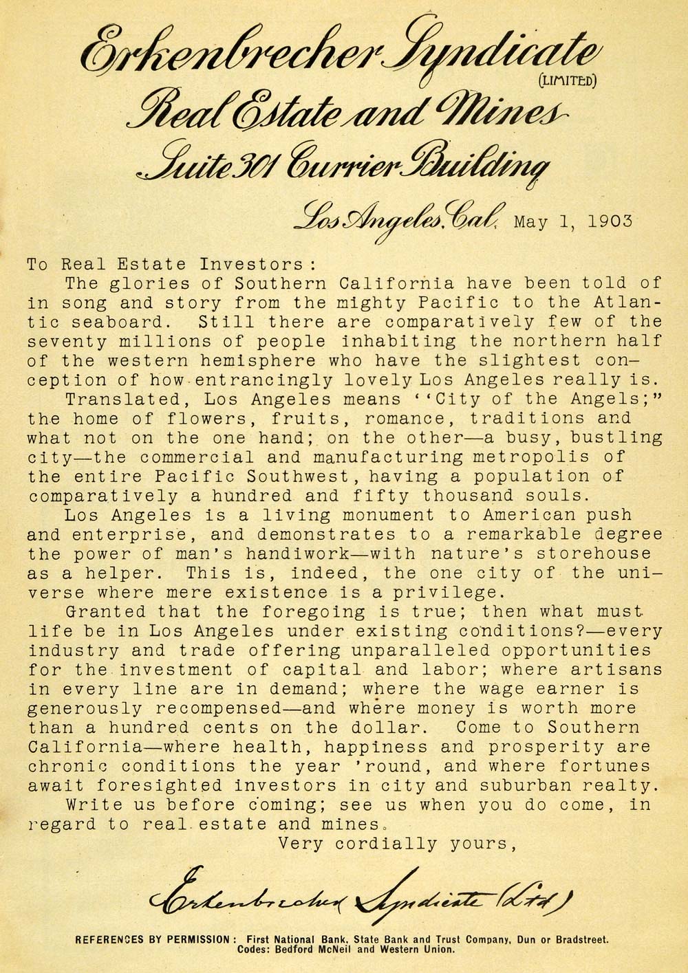 1903 Ad Erkenbrecher Syndicate Los Angeles Tourism - ORIGINAL ADVERTISING OWE1