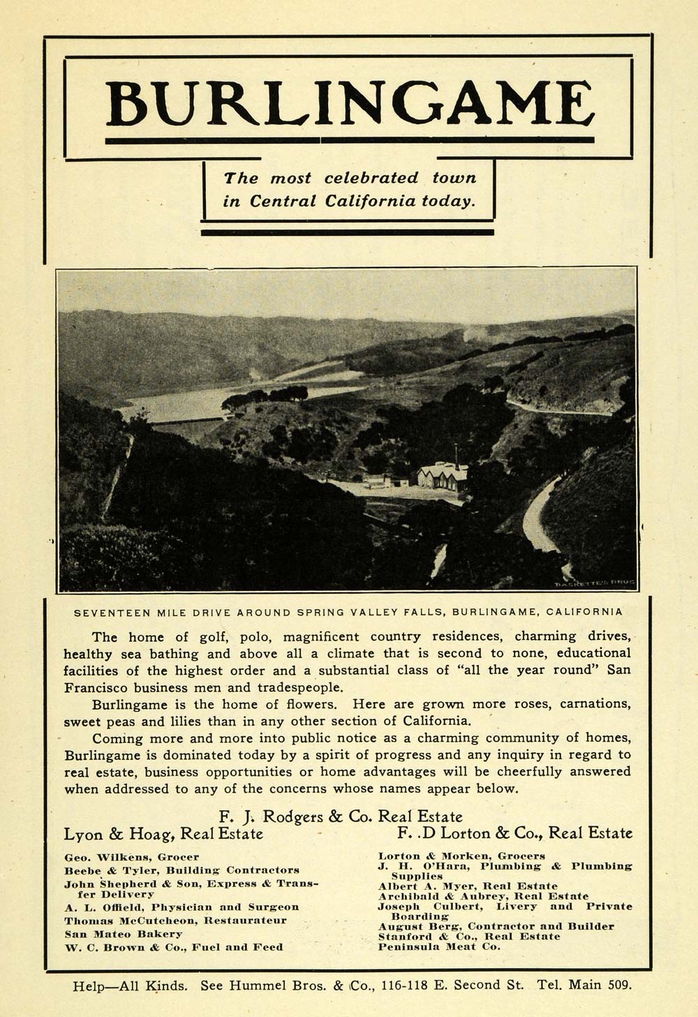 1908 Ad Burlingame California R. J. Rodgers Real Estate - ORIGINAL OWE1