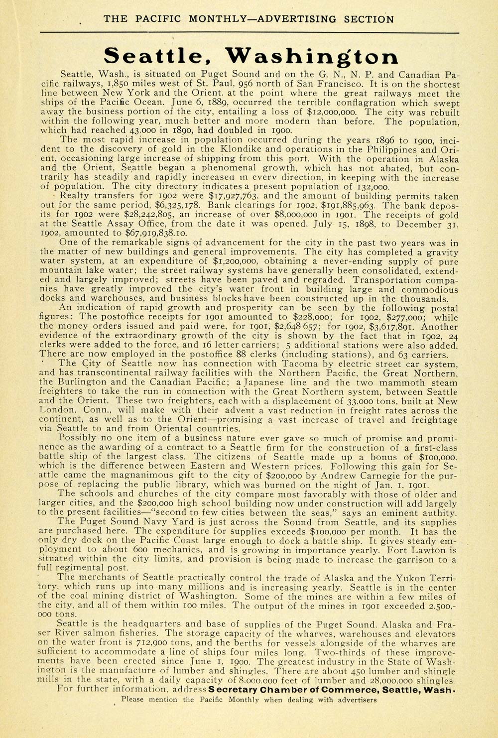 1903 Ad Seattle Washington Chamber Commerce Tourism - ORIGINAL ADVERTISING PM2