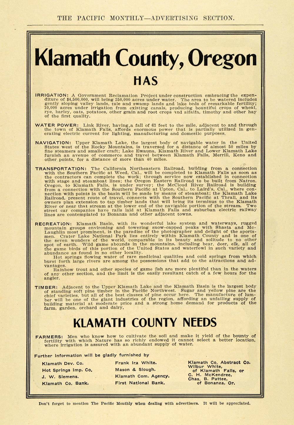 1906 Ad Klamath County Oregon Farming Link River - ORIGINAL ADVERTISING PM2