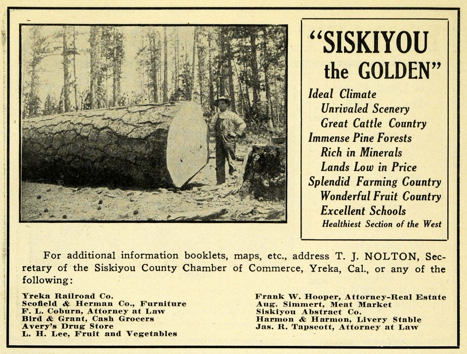 The county of Siskiyou was formed in 1852 and named after the Siskiyou Mountain Range. Aside from the construction of the Central Pacific Railroad through the area, the California Gold Rush also contributed greatly to the population of the county.
