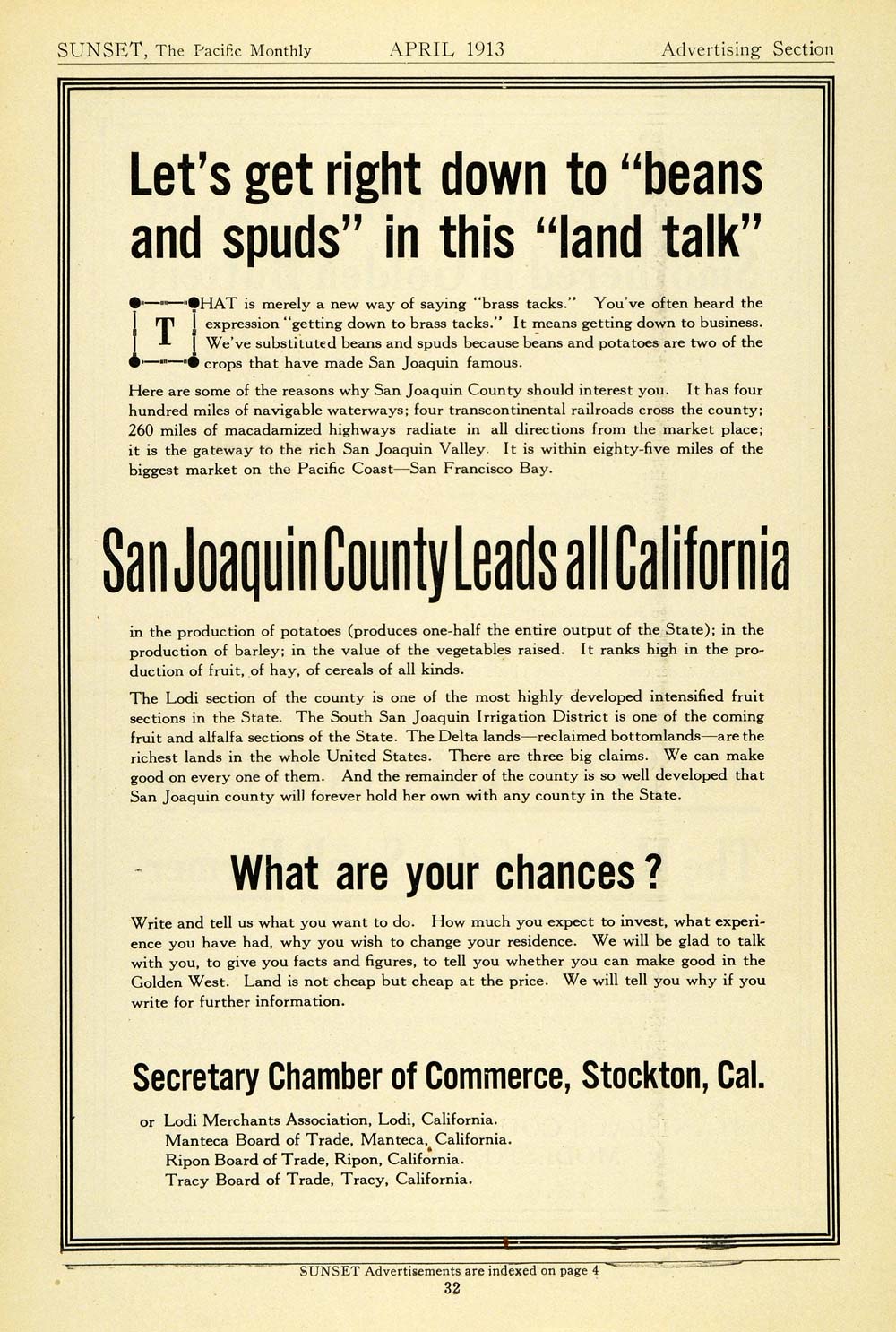 1913 Ad San Joaquin County Stockton California Realty Tourism Delta Lodi PM3