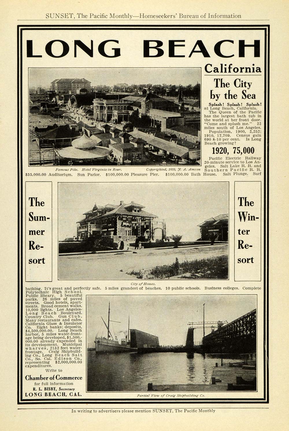 1912 Ad Long Beach California Chamber Commerce Tourism Hotel Virginia PM3