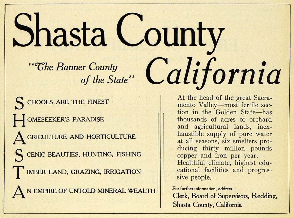 1910 Ad Shasta County California Agriculture Residential Horticulture Realty PM3