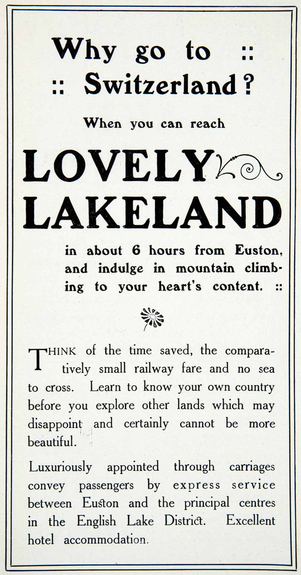 1912 Ad Lakeland Euston Cumbria England Tourism Mountain Climbing XGCA7