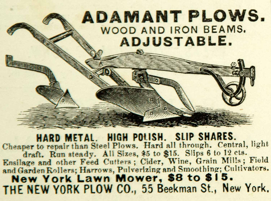 1880 Ad Antique Adamant Plow Farm Equipment 55 Beekman Street New York City YSB1