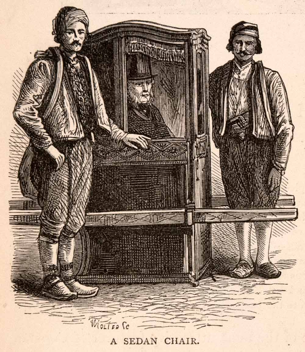 1875 Wood Engraving Tahtirevan Sedan Chair Constantinople Istanbul XGCA1