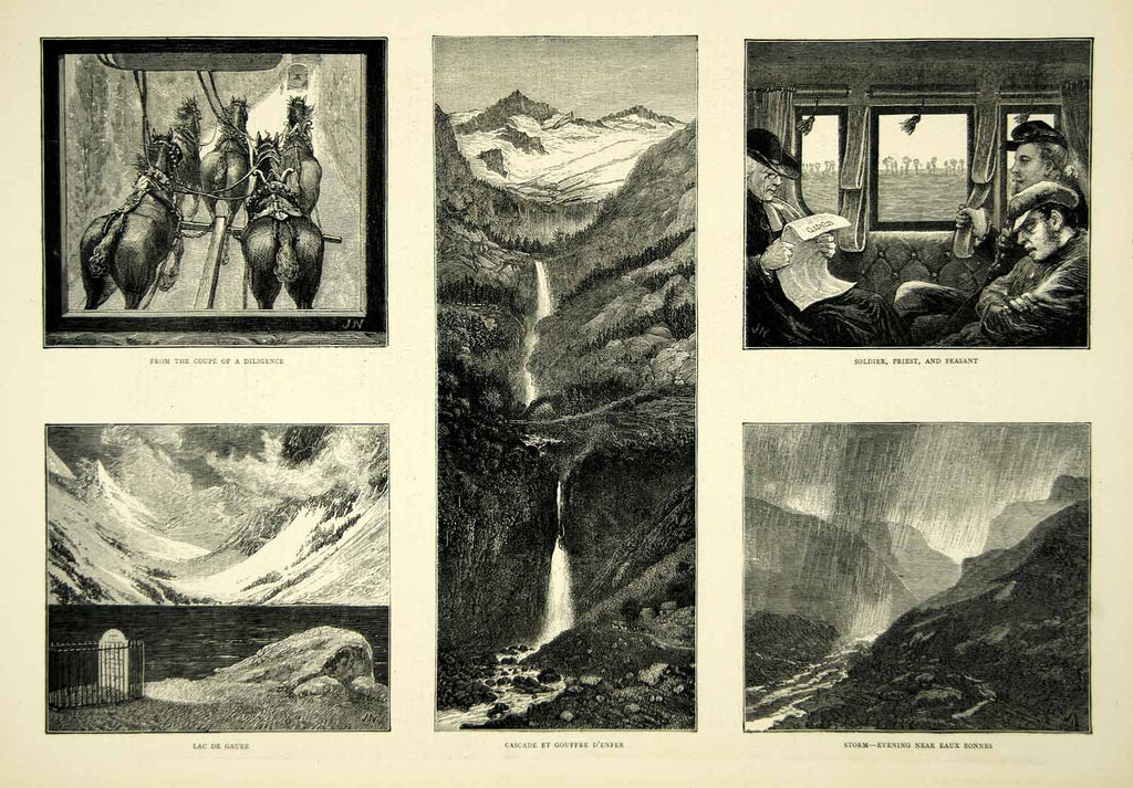 1872 Wood Engraving Art Pyrenees Mountains Europe Gaube Lake Goufree YTG4