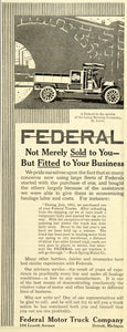 This is an original 1914 black and white print ad for Federal Truck by the Federal Motor Truck Company located at 104 Leavitt Avenue, Detroit, Michigan.