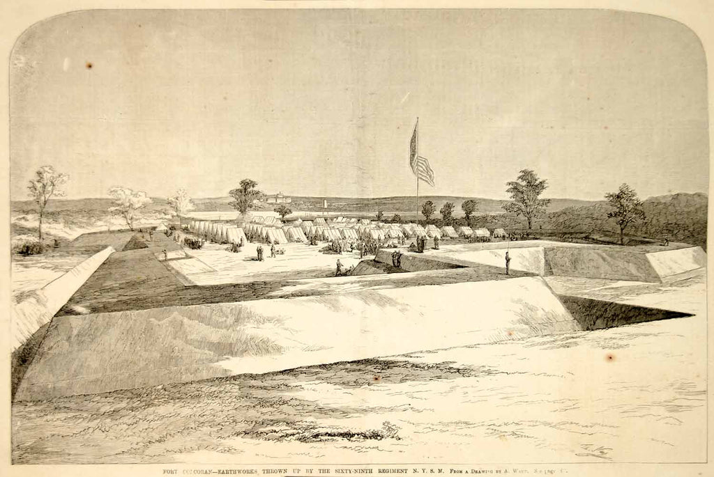 1861 Wood Engraving Fort Corcoran Earthworks Fortification U.S. Civil War NYN1