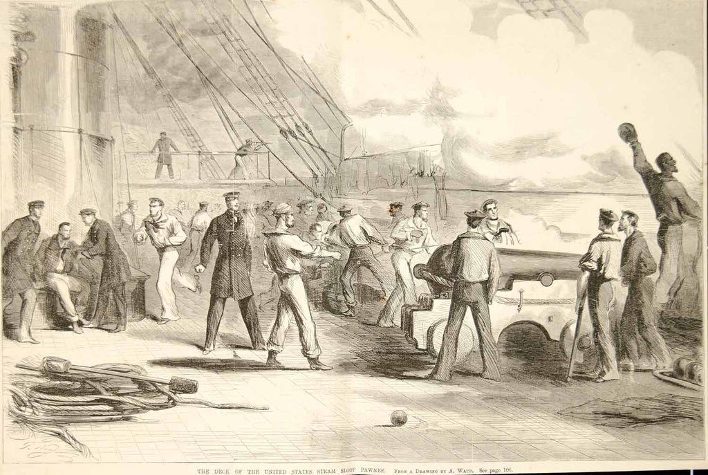 1861 Wood Engraving USS Pawnee Sloop-of-War Deck Guns American Civil War NYN1