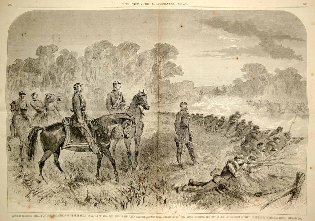 1861 Wood Engraving First Battle Bull Run Manassas Union Retreat Civil War NYN1