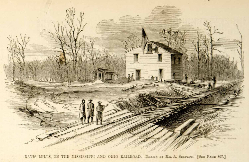 1862 Wood Engraving Alexander Simplot Davis Mills Mississippi & Ohio YHW2