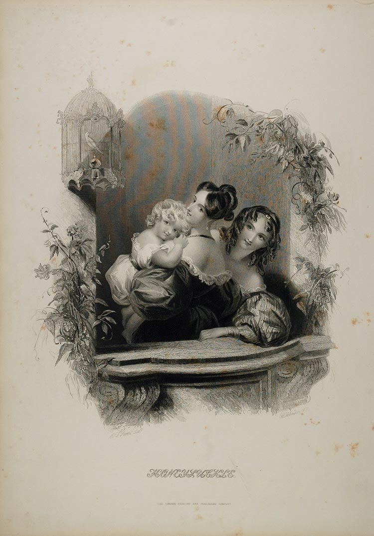 1838 Victorian Women Child Honeysuckle Vine Engraving - ORIGINAL FL1