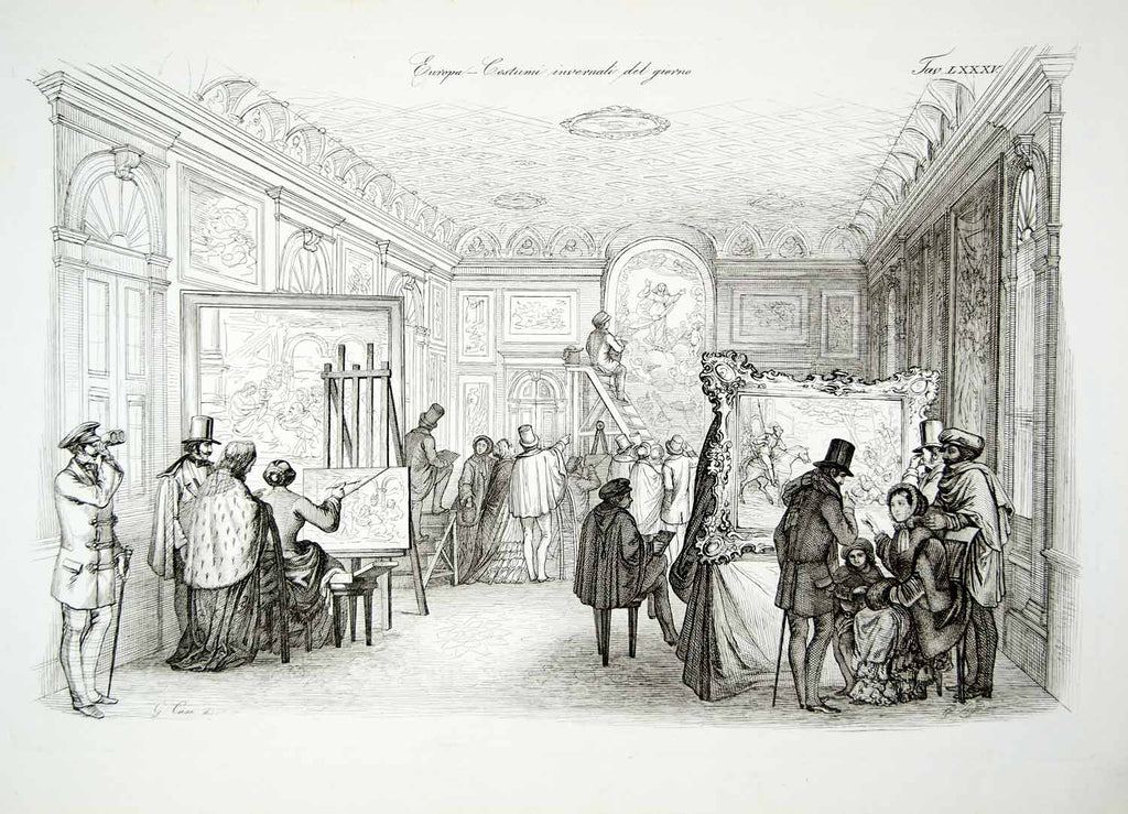 1843 Copper Engraving Giacomo Casa Art Victorian Costume Winter Fashion ILC3