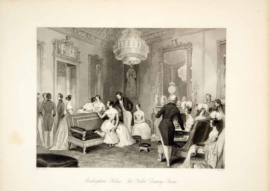 1845 Steel Engraving MacManus Buckingham Palace Yellow Drawing Room XGHD9