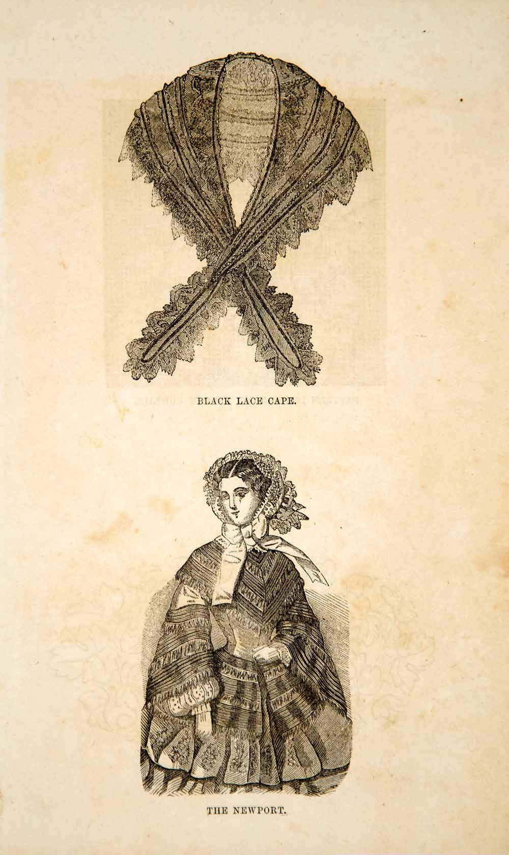 1856 Wood Engraving Antique Victorian Fashion Lace Newport Cape Cloak Lady YPM2