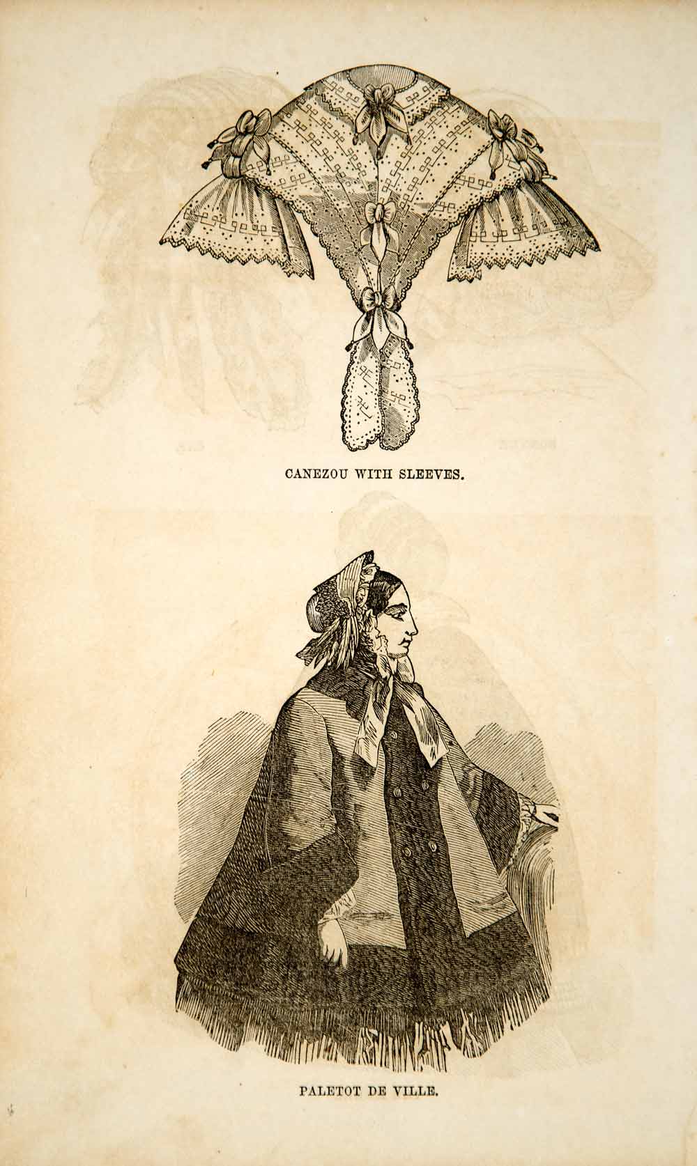 1856 Wood Engraving Antique Victorian Canezou Paletot de Ville Coat Sleeves YPM2
