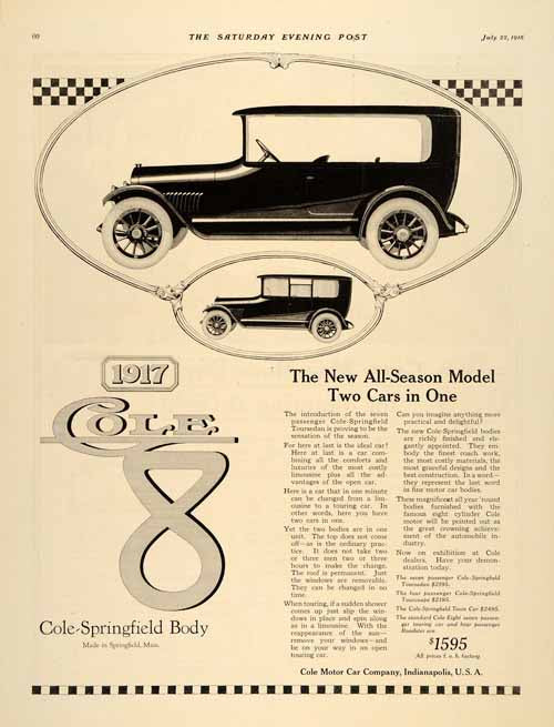 1916 Ad Cole-Springfield Antique Automobile Enthusiasts - ORIGINAL SP4