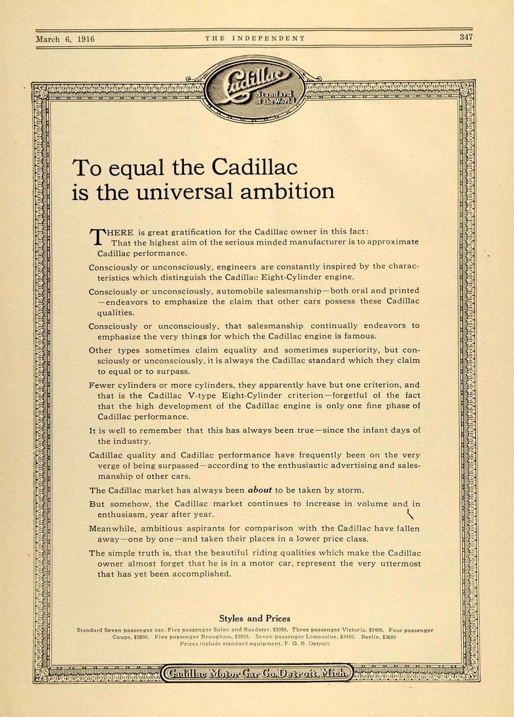 1916 Ad Cadillac V-Type Eight Cylinder Automobiles WWI - ORIGINAL TIN3