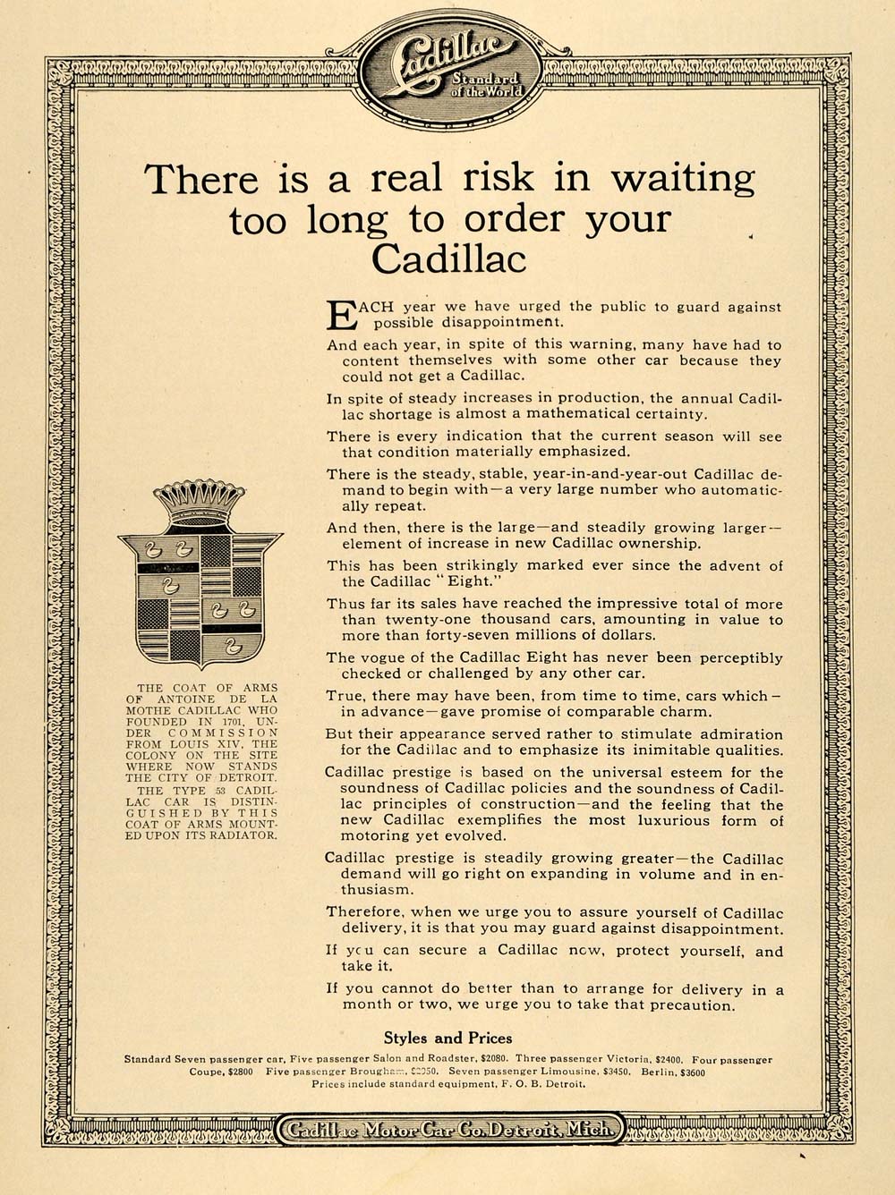 1916 Ad Cadillac Coat of Arms of Antoine de la Mothe - ORIGINAL ADVERTISING TIN3