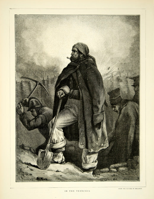 1870 Wood Engraving Hippolyte Bellange Art Trenches Franco-Prussian War YTG1