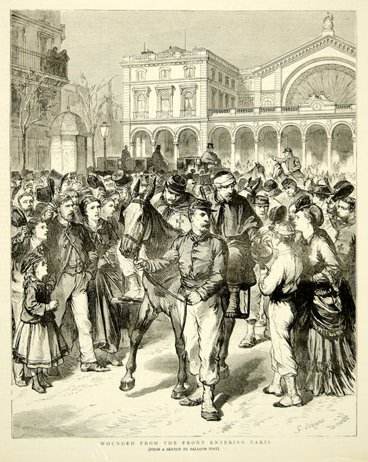1870 Wood Engraving G Durand Franco-Prussian War Wounded Soldiers Paris YTG1
